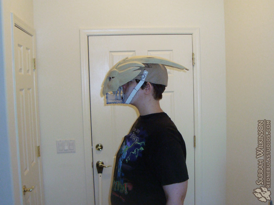 The teeth have been attached here, but the face piece has not, yet. I'm just testing to see how the whole mask looks together, and how the jaws are working.