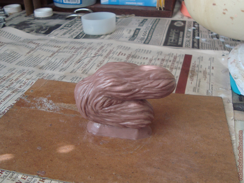 My molding process is pretty much the same as always - Brush on coats of Rebound 25 silicone and then create a two-piece mold shell from FreeForm Air. About the only unique trick I did this time around is that I used my airbrush compressor to ensure the first layer of silicone got into every little detail of that furry face!